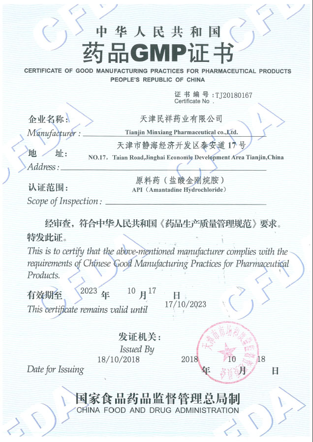 中華人民共和國(guó)藥品GMP證書(shū)(鹽酸金剛烷胺)
